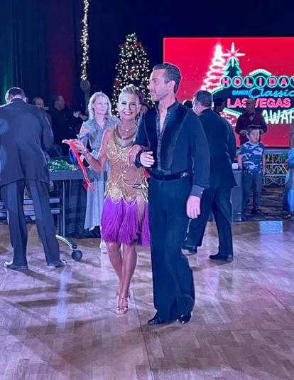 Heidi has made a remarkable journey in the world of dance competitions. On July 7th, 2022, she won the Senior Bronze Division Scholarship, representing her first time taking home an overall first place award. Although she was initially nervous for an event on August 13th, she still managed to secure a second-place finish; Heidi credits her improved body and muscle definition to her hard work and training with Trish. Finally, on October 29th, Heidi achieved a First Place 3 Dance Championship and a Second Place 2 Dance Championship at the Universal City DanceSport Championship. Despite coming in second at the final event on December 16th, Heidi is proud of her accomplishments against such competitive opposition.